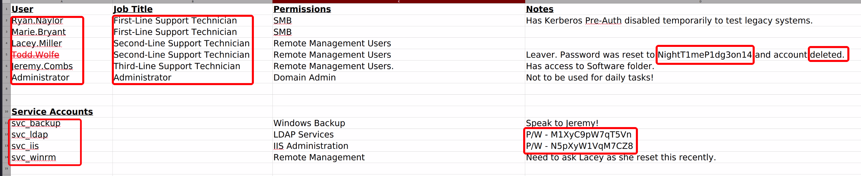 1 2 3 Todd.Wolfe NightT1meP1dg3on14 svc_ldap M1XyC9pW7qT5Vn svc_iis N5pXyW1VqM7CZ8