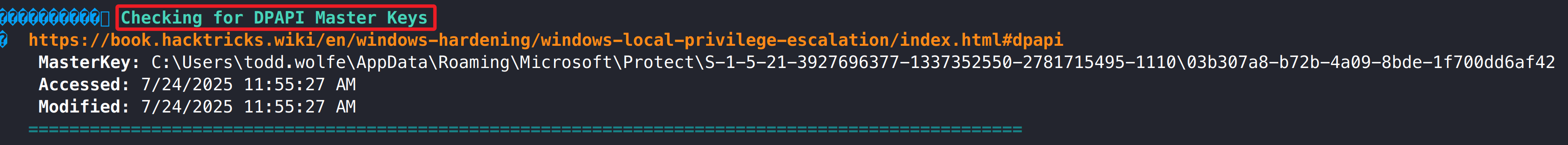 搜集过程发现了 Todd.Wolfe 用户目录存在 DPAPI keys,访问参考链接: