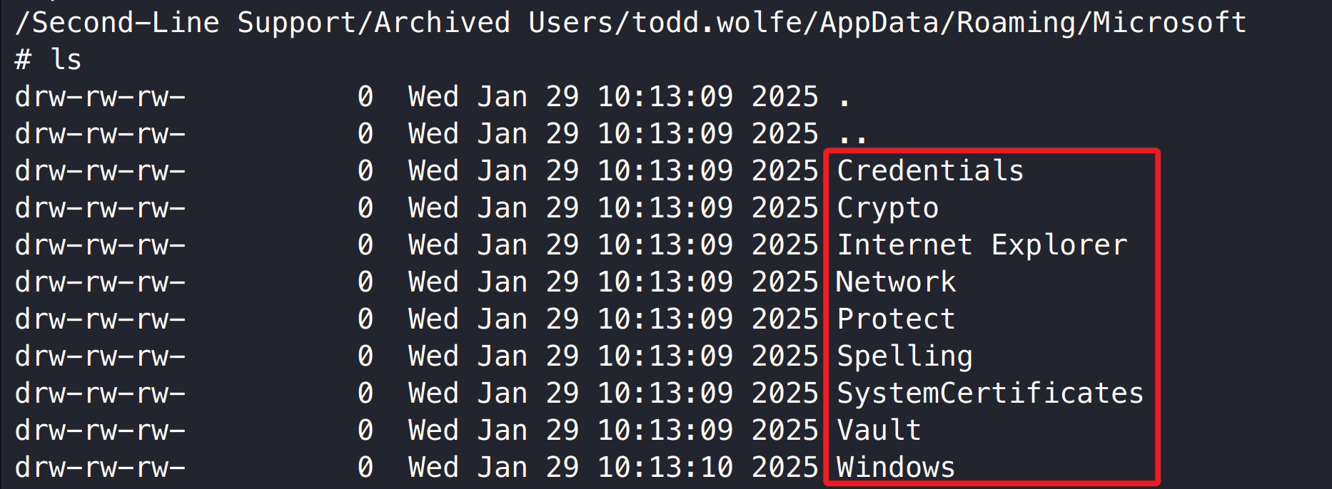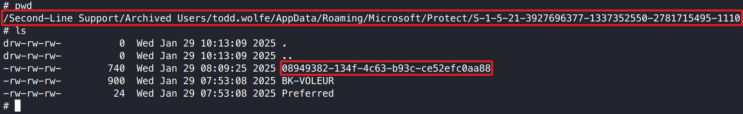 1 2 /Second-Line Support/Archived Users/todd.wolfe/AppData/Roaming/Microsoft/Protect/S-1-5-21-3927696377-1337352550-2781715495-1110 08949382-134f-4c63-b93c-ce52efc0aa88