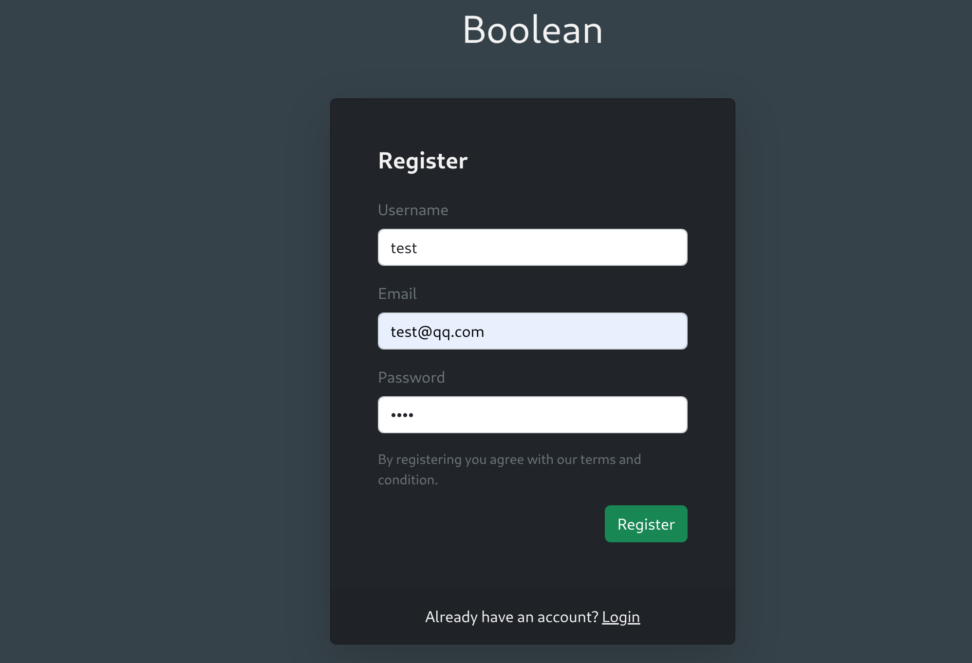 系统 HTTP 3000 端口枚举未发现任何有价值信息(兔子洞),HTTP 80 服务存在登录和注册功能。