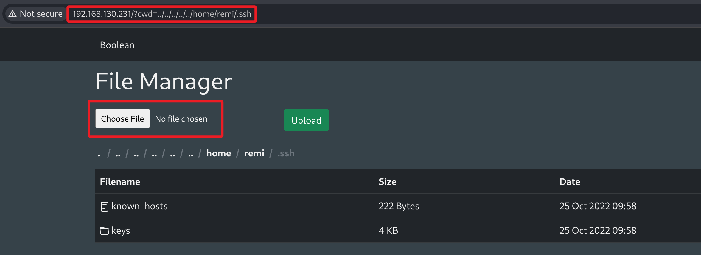| http://192.168.130.231/?cwd=../../../../../home/remi/.ssh
