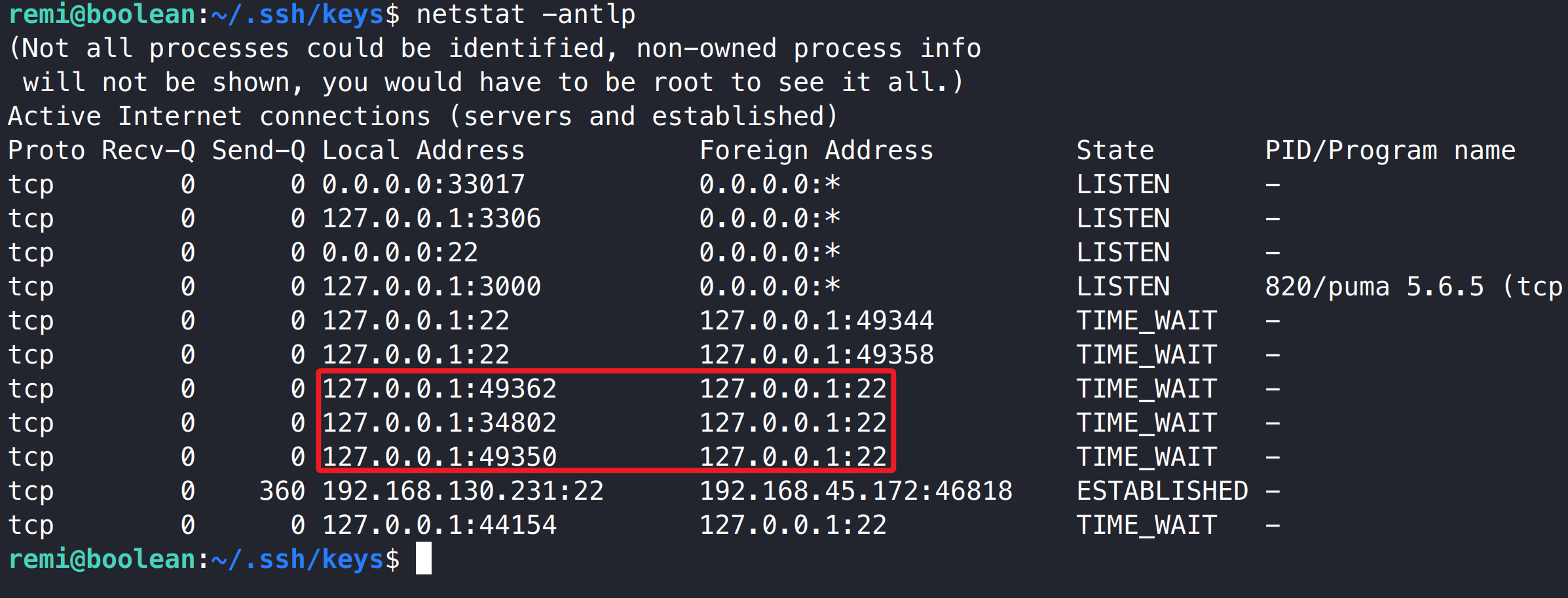 通过系统网络连接发现本地 22 端口被某个进程访问。