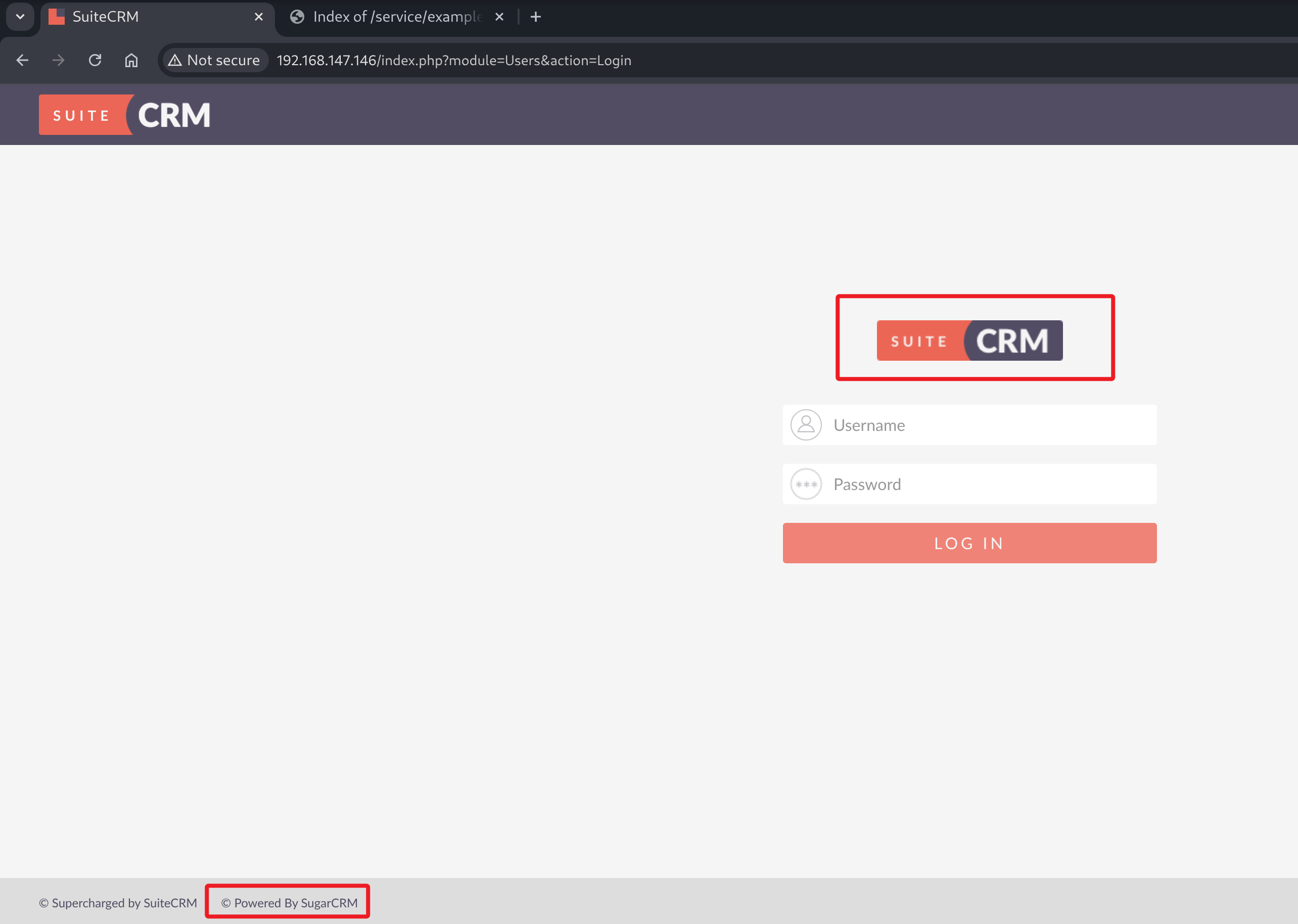 访问系统 HTTP 80 端口,发现服务运行了 SugarCRM 系统,其中 Mysql 和 Mysqlx 服务均为兔子洞。