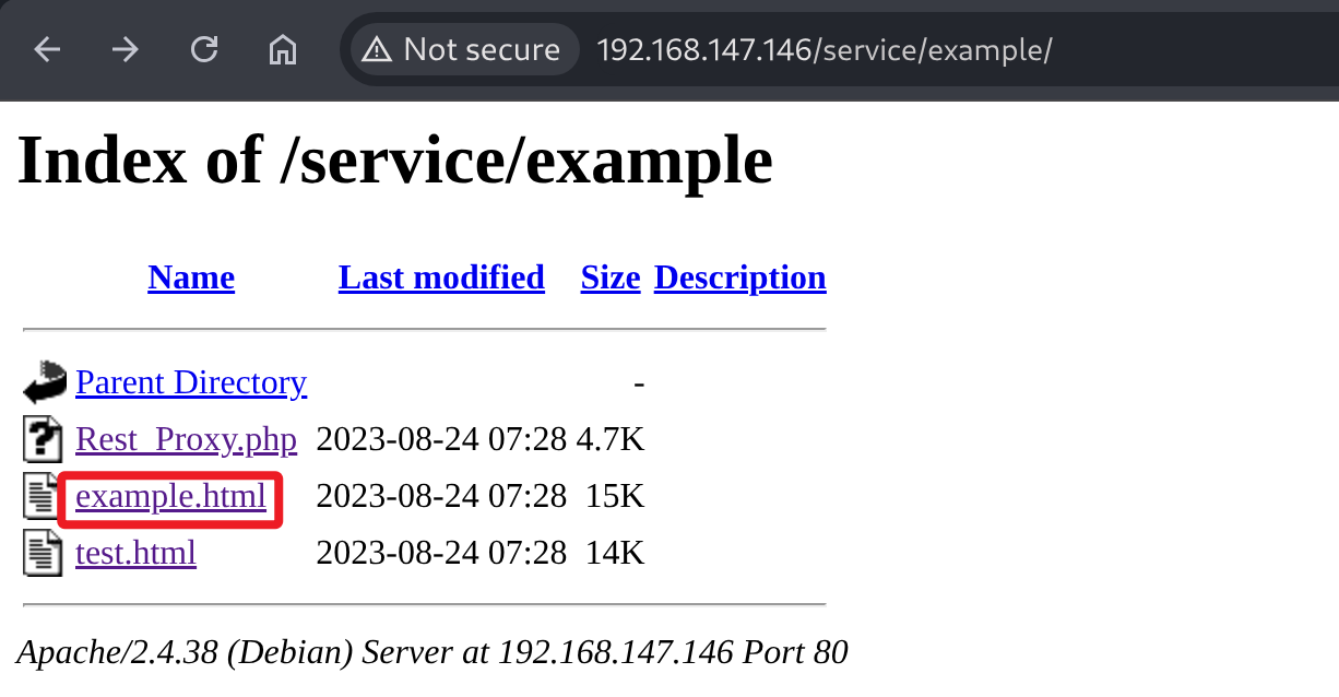 回到目录枚举的结果,尝试对每个文件和目录进行排查,当排查到 service 目录时,在其 example 目录发现了测试页面。