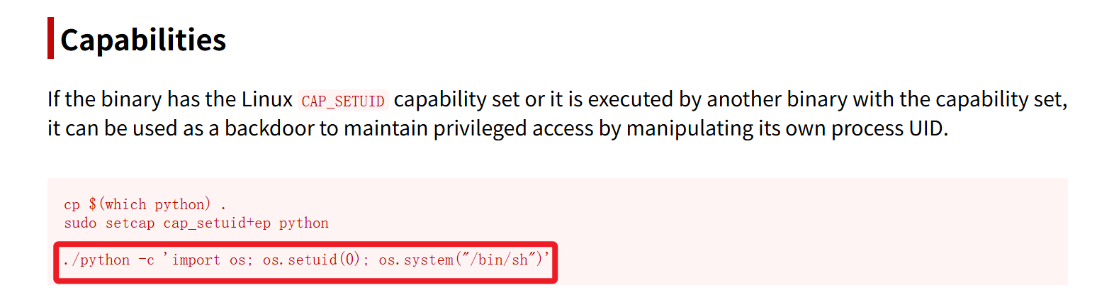 Python Capabilities cap_setuid 特权 –> root 用户权限 –> 管理员旗帜