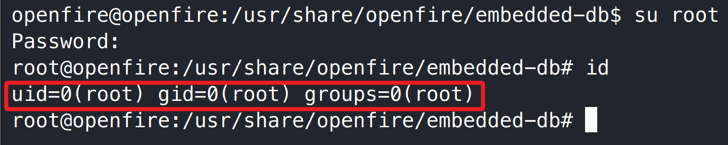 openfire.script 文件包含了多个配置密码,经过尝试,最终使用 smtp 密码移动至 root 用户。