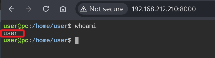 PORT STATE SERVICE VERSION 22/tcp open ssh OpenSSH 8.2p1 Ubuntu 4ubuntu0.9 (Ubuntu Linux; protocol 2.0) | ssh-hostkey: | 3072 62:36:1a:5c:d3:e3:7b:e1:70:f8:a3:b3:1c:4c:24:38 (RSA) | 256 ee:25:fc:23:66:05:c0:c1:ec:47:c6:bb:00:c7:4f:53 (ECDSA) |_ 256 83:5c:51:ac:32:e5:3a:21:7c:f6:c2:cd:93:68:58:d8 (ED25519) 8000/tcp open http ttyd 1.7.3-a2312cb (libwebsockets 3.2.0) |_http-title: ttyd - Terminal |_http-server-header: ttyd/1.7.3-a2312cb (libwebsockets/3.2.0) Service Info: OS: Linux; CPE: cpe:/o:linux:linux_kernel