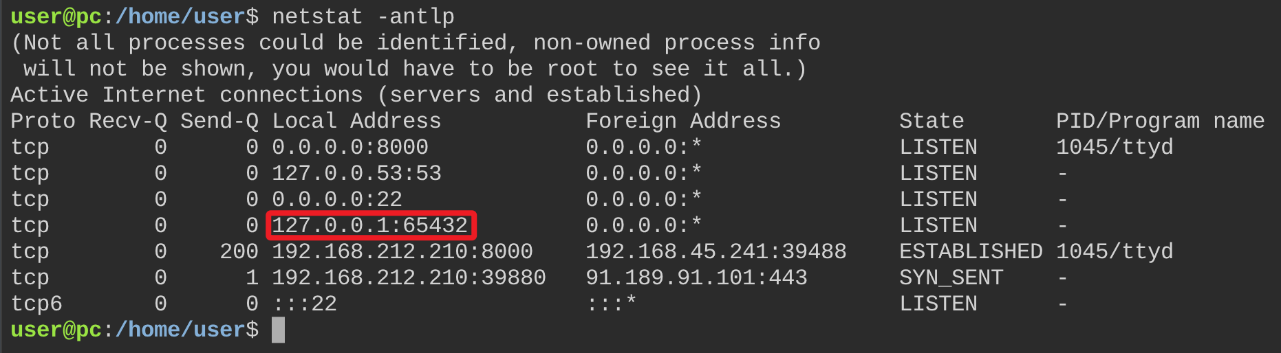 检索系统 suid 和 sudo 权限均没有有价值发现,查看系统网路连接时发现本地监听了 65432。