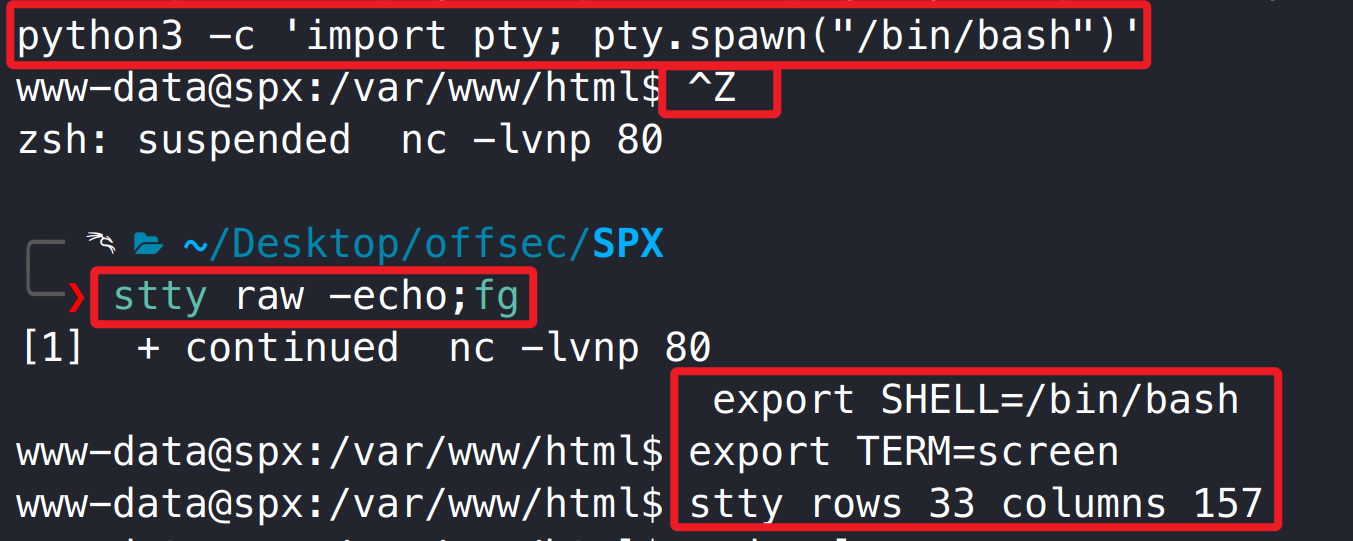 这里第一时间并没有在 phpinfo 中注意到 SPX 应用,而是进行了大量的目录枚举和检索 phpinfo 敏感字符,偶然间注意到靶机名称时,忽然醒悟,加上该应用还泄露 key 字段,然后才针对该应用检索漏洞信息。在 OSCP 考试中,每台靶机是没有名字的,所以,当思路不通或没有思路的时候,一定要回头仔细阅之前收集到的信息,或许在某个角落就隐藏了重要线索。