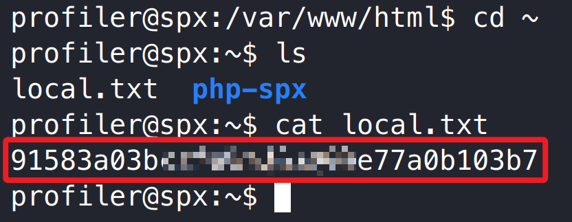 目录枚举 –> phpinfo 页面得到 SPX 版本和 key 信息 –> SPX 任意文件读取 –> Tiny File Manager 应用后台加密密码 –> hashcat 破解 –> Tiny File Manager 应用后台写入一句话木马 –> www-data 用户权限 –> web admin 密码复用 –> profiler 用户权限 –> 用户旗帜