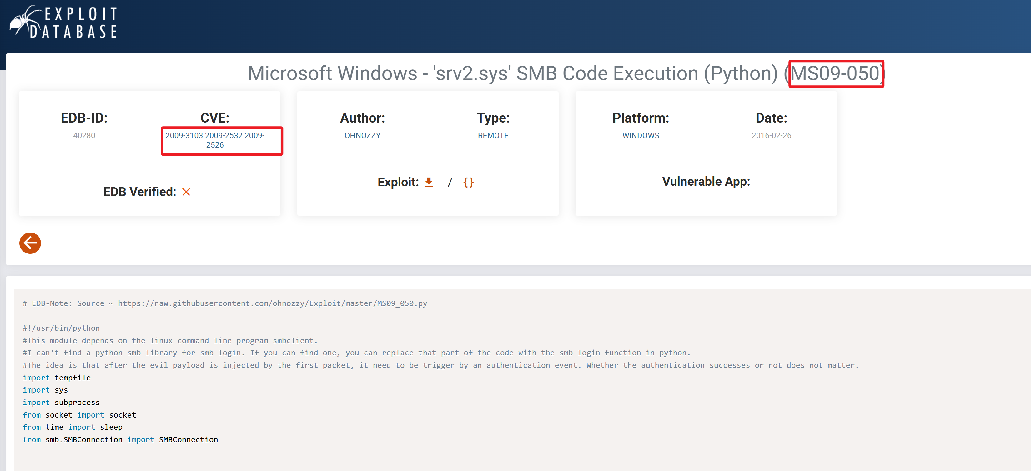 3.2.1 SMB 远程代码执行漏洞(CVE-2009-3103)