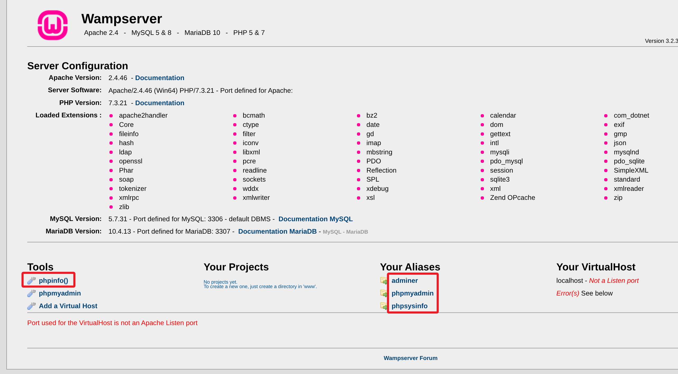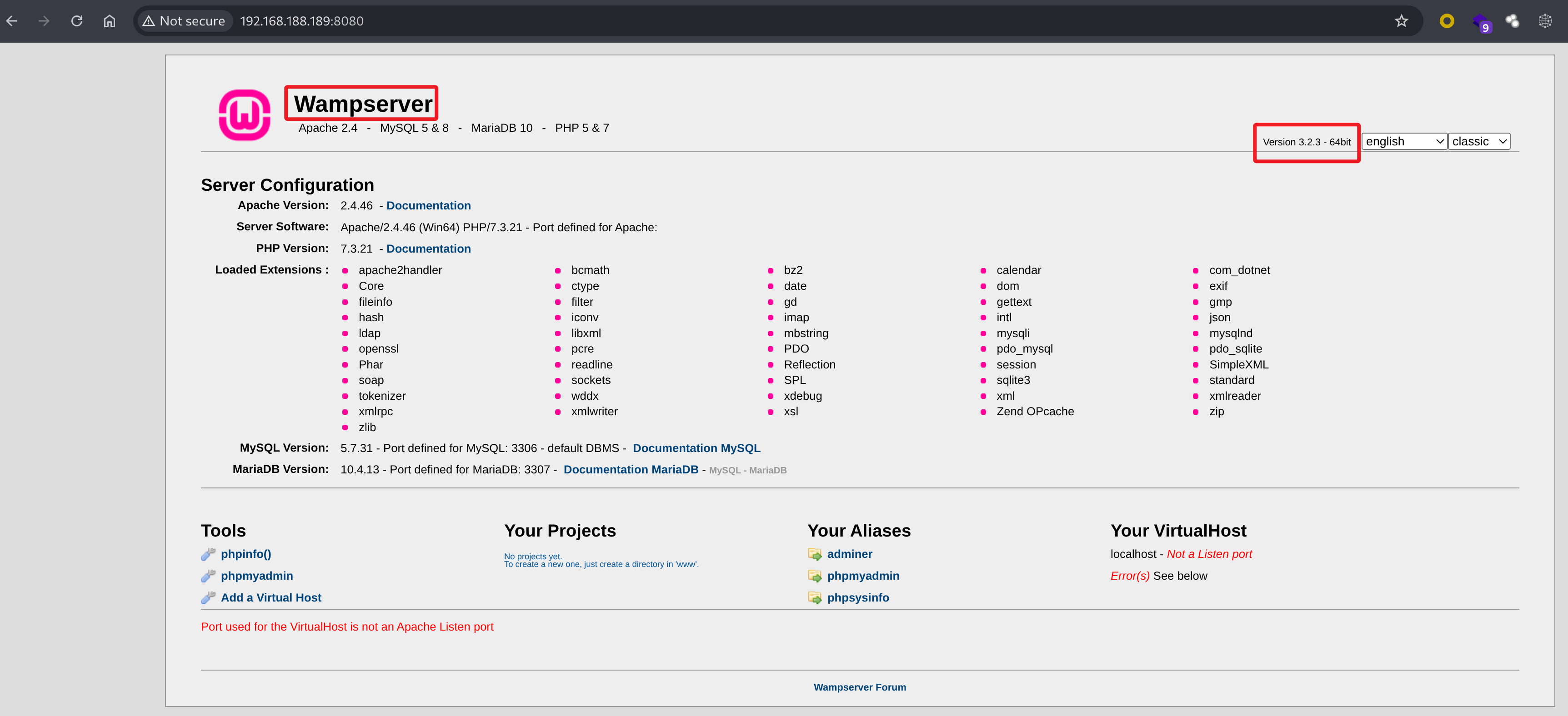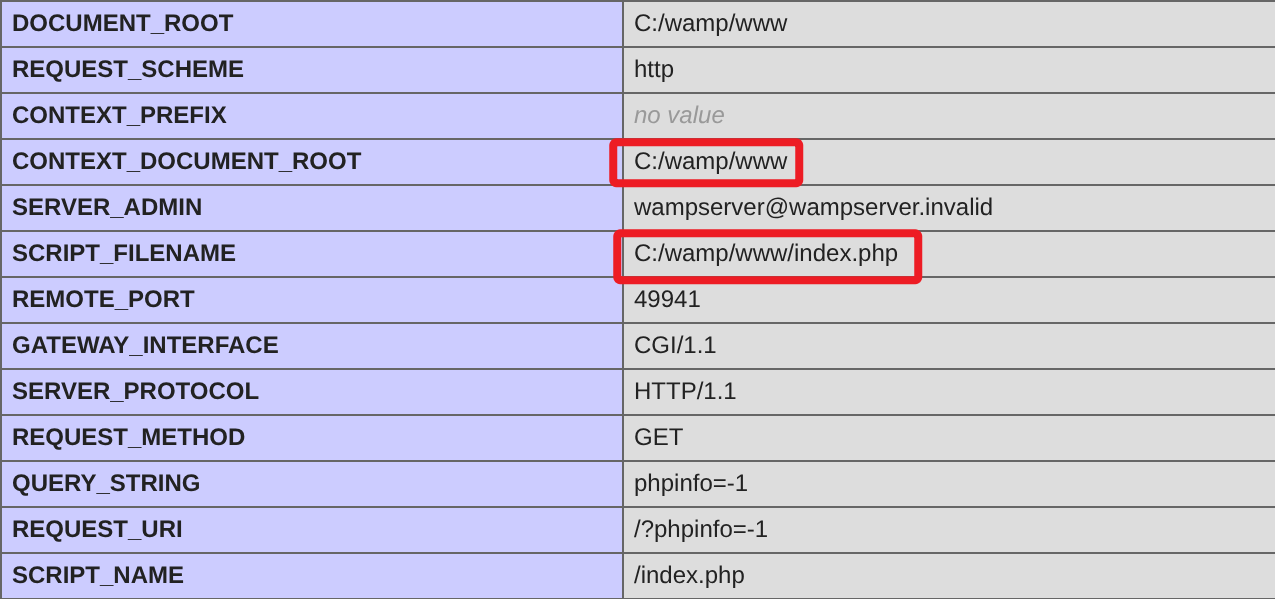 根据页面信息可得知应用为:Wampserver Version 3.2.3 - 64bit,检索应用已知漏洞依旧没有发现可利用的 EXP。