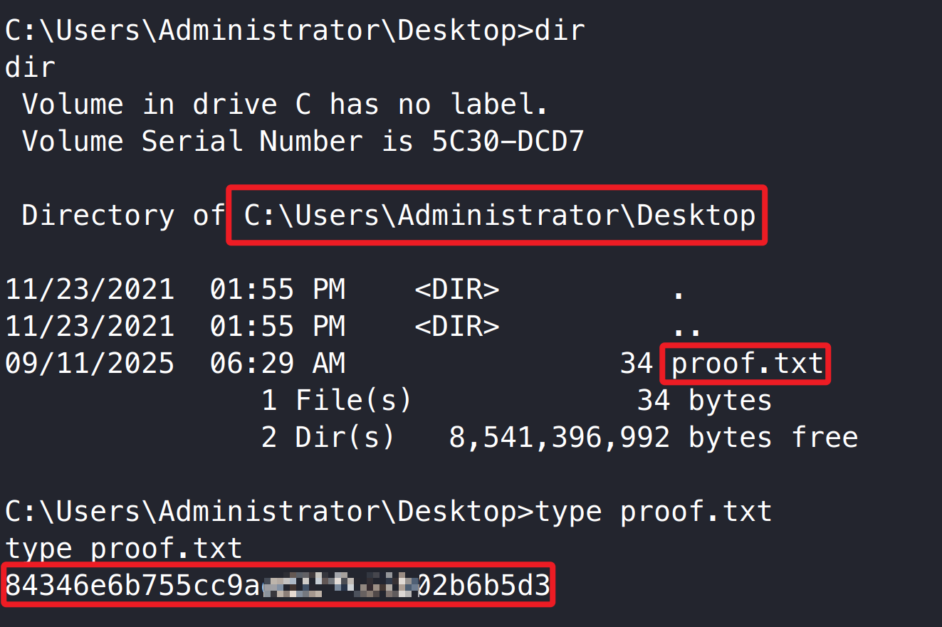 1 2 3 4 5 6 7 8 9 10 11 12 13 14 15 16 17 18 19 20 21 sudo nmap -p135,139,445,3128,49666,49667 -sCV 192.168.188.189 PORT STATE SERVICE VERSION 135/tcp open msrpc Microsoft Windows RPC 139/tcp open netbios-ssn Microsoft Windows netbios-ssn 445/tcp open microsoft-ds? 3128/tcp open http-proxy Squid http proxy 4.14 |_http-title: ERROR: The requested URL could not be retrieved |_http-server-header: squid/4.14 49666/tcp open msrpc Microsoft Windows RPC 49667/tcp open msrpc Microsoft Windows RPC Service Info: OS: Windows; CPE: cpe:/o:microsoft:windows Host script results: |_clock-skew: -1s | smb2-time: | date : 2025-09-10T14:09:39 |_ start_date: N/A | smb2-security-mode: | 3:1:1: |_ Message signing enabled but not required