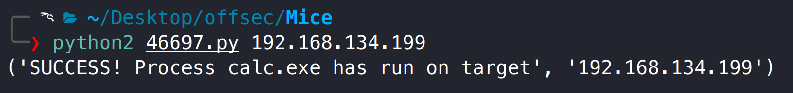 复制远程命令执行利用脚本至当前路径,测试发现可正常执行计算器,说明漏洞存在。