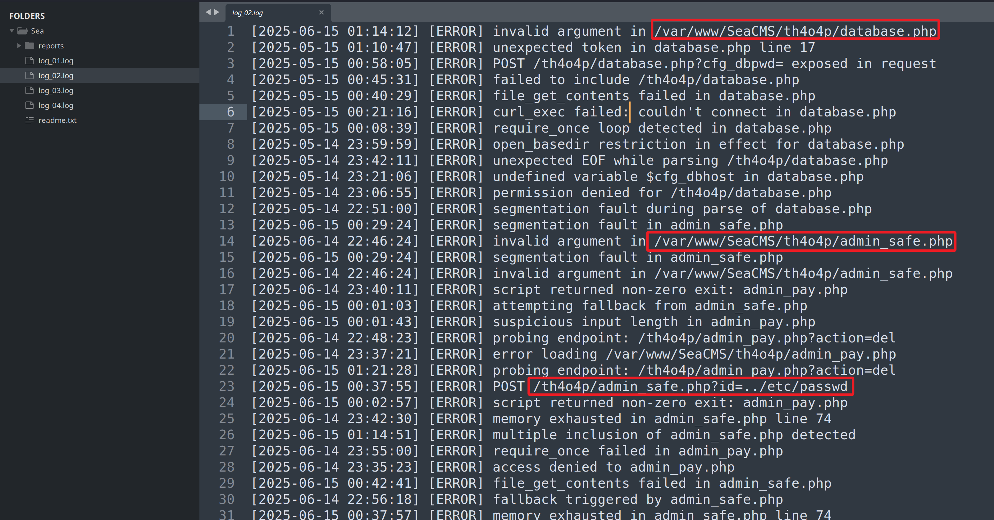 访问靶机 FTP 服务(匿名访问),将目录所有 log 文件下载至本地。