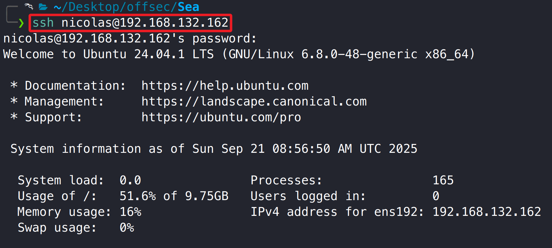 SSH 连接靶机,得到系统 nicolas 用户权限。