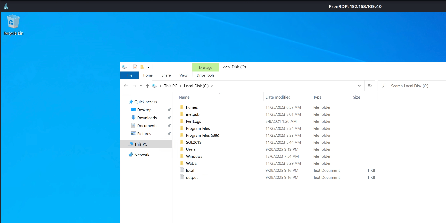 PORT STATE SERVICE VERSION 53/tcp open domain Simple DNS Plus 80/tcp open http Microsoft IIS httpd 10.0 |_http-title: IIS Windows Server | http-methods: |_ Potentially risky methods: TRACE |_http-server-header: Microsoft-IIS/10.0 88/tcp open kerberos-sec Microsoft Windows Kerberos (server time: 2025-09-26 08:09:36Z) 135/tcp open msrpc Microsoft Windows RPC 139/tcp open netbios-ssn Microsoft Windows netbios-ssn 389/tcp open ldap Microsoft Windows Active Directory LDAP (Domain: hokkaido-aerospace.com0., Site: Default-First-Site-Name) | ssl-cert: Subject: commonName=dc.hokkaido-aerospace.com | Subject Alternative Name: othername: 1.3.6.1.4.1.311.25.1:<unsupported>, DNS:dc.hokkaido-aerospace.com | Not valid before: 2023-12-07T13:54:18 |_Not valid after: 2024-12-06T13:54:18 |_ssl-date: 2025-09-26T08:10:45+00:00; -3s from scanner time. 445/tcp open microsoft-ds? 464/tcp open kpasswd5? 593/tcp open ncacn_http Microsoft Windows RPC over HTTP 1.0 636/tcp open ssl/ldap Microsoft Windows Active Directory LDAP (Domain: hokkaido-aerospace.com0., Site: Default-First-Site-Name) |_ssl-date: 2025-09-26T08:10:45+00:00; -3s from scanner time. | ssl-cert: Subject: commonName=dc.hokkaido-aerospace.com | Subject Alternative Name: othername: 1.3.6.1.4.1.311.25.1:<unsupported>, DNS:dc.hokkaido-aerospace.com | Not valid before: 2023-12-07T13:54:18 |_Not valid after: 2024-12-06T13:54:18 1433/tcp open ms-sql-s Microsoft SQL Server 2019 15.00.2000.00; RTM | ms-sql-ntlm-info: | 192.168.171.40:1433: | Target_Name: HAERO | NetBIOS_Domain_Name: HAERO | NetBIOS_Computer_Name: DC | DNS_Domain_Name: hokkaido-aerospace.com | DNS_Computer_Name: dc.hokkaido-aerospace.com | DNS_Tree_Name: hokkaido-aerospace.com |_ Product_Version: 10.0.20348 | ms-sql-info: | 192.168.171.40:1433: | Version: | name: Microsoft SQL Server 2019 RTM | number: 15.00.2000.00 | Product: Microsoft SQL Server 2019 | Service pack level: RTM | Post-SP patches applied: false |_ TCP port: 1433 |_ssl-date: 2025-09-26T08:10:45+00:00; -3s from scanner time. | ssl-cert: Subject: commonName=SSL_Self_Signed_Fallback | Not valid before: 2024-08-02T02:13:54 |_Not valid after: 2054-08-02T02:13:54 3268/tcp open ldap Microsoft Windows Active Directory LDAP (Domain: hokkaido-aerospace.com0., Site: Default-First-Site-Name) |_ssl-date: 2025-09-26T08:10:45+00:00; -4s from scanner time. | ssl-cert: Subject: commonName=dc.hokkaido-aerospace.com | Subject Alternative Name: othername: 1.3.6.1.4.1.311.25.1:<unsupported>, DNS:dc.hokkaido-aerospace.com | Not valid before: 2023-12-07T13:54:18 |_Not valid after: 2024-12-06T13:54:18 3269/tcp open ssl/ldap Microsoft Windows Active Directory LDAP (Domain: hokkaido-aerospace.com0., Site: Default-First-Site-Name) | ssl-cert: Subject: commonName=dc.hokkaido-aerospace.com | Subject Alternative Name: othername: 1.3.6.1.4.1.311.25.1:<unsupported>, DNS:dc.hokkaido-aerospace.com | Not valid before: 2023-12-07T13:54:18 |_Not valid after: 2024-12-06T13:54:18 |_ssl-date: 2025-09-26T08:10:45+00:00; -3s from scanner time. 3389/tcp open ms-wbt-server Microsoft Terminal Services |_ssl-date: 2025-09-26T08:10:45+00:00; -3s from scanner time. | ssl-cert: Subject: commonName=dc.hokkaido-aerospace.com | Not valid before: 2025-09-25T07:58:19 |_Not valid after: 2026-03-27T07:58:19 5985/tcp open http Microsoft HTTPAPI httpd 2.0 (SSDP/UPnP) |_http-server-header: Microsoft-HTTPAPI/2.0 |_http-title: Not Found 8530/tcp open http Microsoft IIS httpd 10.0 |_http-title: 403 - Forbidden: Access is denied. |_http-server-header: Microsoft-IIS/10.0 | http-methods: |_ Potentially risky methods: TRACE 8531/tcp open unknown 9389/tcp open mc-nmf .NET Message Framing 47001/tcp open http Microsoft HTTPAPI httpd 2.0 (SSDP/UPnP) |_http-title: Not Found |_http-server-header: Microsoft-HTTPAPI/2.0 49664/tcp open msrpc Microsoft Windows RPC 49665/tcp open msrpc Microsoft Windows RPC 49666/tcp open msrpc Microsoft Windows RPC 49667/tcp open msrpc Microsoft Windows RPC 49668/tcp open msrpc Microsoft Windows RPC 49671/tcp open msrpc Microsoft Windows RPC 49675/tcp open msrpc Microsoft Windows RPC 49684/tcp open ncacn_http Microsoft Windows RPC over HTTP 1.0 49685/tcp open msrpc Microsoft Windows RPC 49691/tcp open msrpc Microsoft Windows RPC 49700/tcp open msrpc Microsoft Windows RPC 49701/tcp open msrpc Microsoft Windows RPC 49712/tcp open msrpc Microsoft Windows RPC 49788/tcp open msrpc Microsoft Windows RPC 58538/tcp open ms-sql-s Microsoft SQL Server 2019 15.00.2000.00; RTM | ms-sql-ntlm-info: | 192.168.171.40:58538: | Target_Name: HAERO | NetBIOS_Domain_Name: HAERO | NetBIOS_Computer_Name: DC | DNS_Domain_Name: hokkaido-aerospace.com | DNS_Computer_Name: dc.hokkaido-aerospace.com | DNS_Tree_Name: hokkaido-aerospace.com |_ Product_Version: 10.0.20348 | ssl-cert: Subject: commonName=SSL_Self_Signed_Fallback | Not valid before: 2024-08-02T02:13:54 |_Not valid after: 2054-08-02T02:13:54 | ms-sql-info: | 192.168.171.40:58538: | Version: | name: Microsoft SQL Server 2019 RTM | number: 15.00.2000.00 | Product: Microsoft SQL Server 2019 | Service pack level: RTM | Post-SP patches applied: false |_ TCP port: 58538 |_ssl-date: 2025-09-26T08:10:46+00:00; -3s from scanner time. Service Info: Host: DC; OS: Windows; CPE: cpe:/o:microsoft:windows