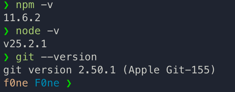 使用 brew 安装 Git 和 Node.js。