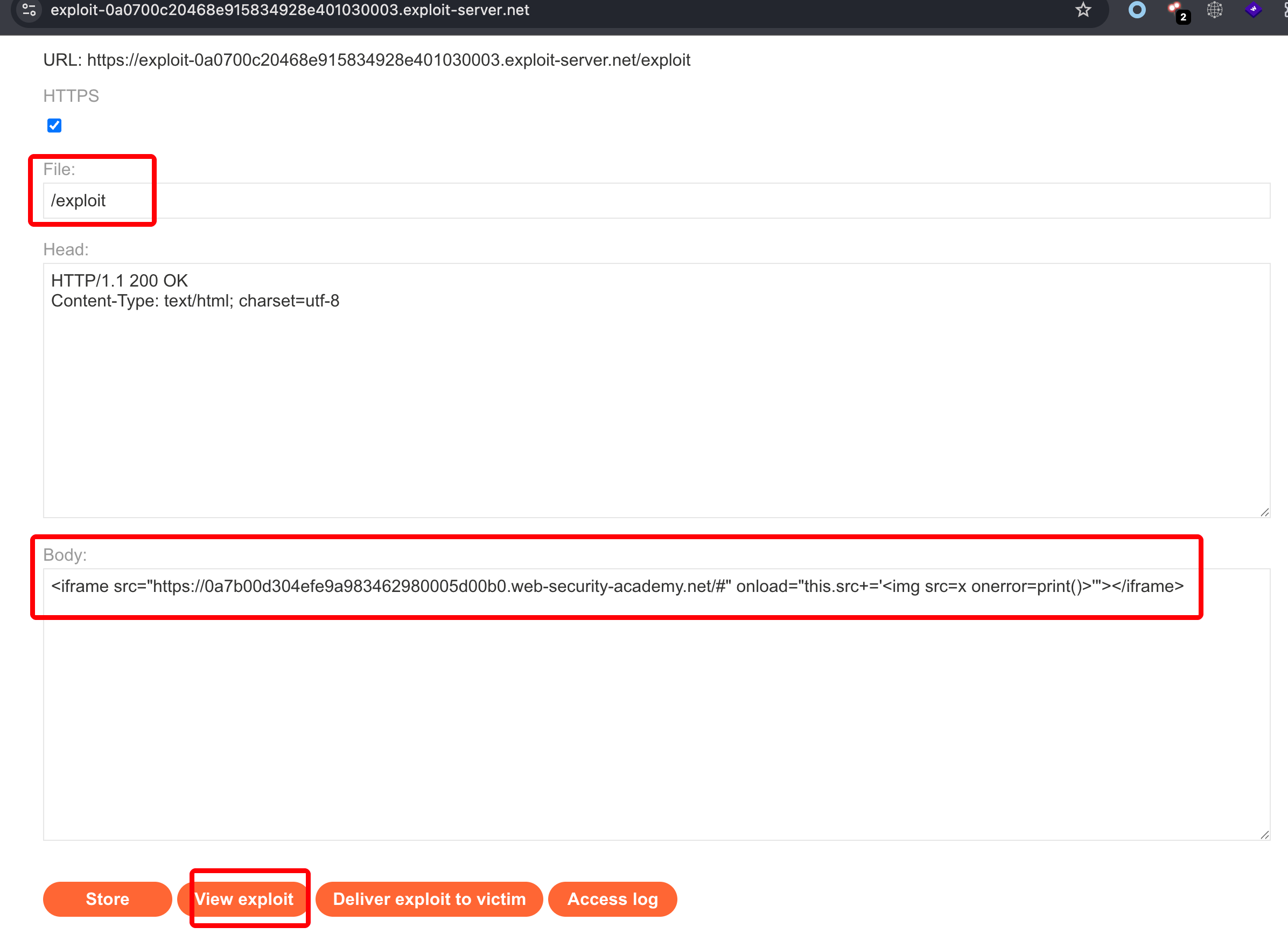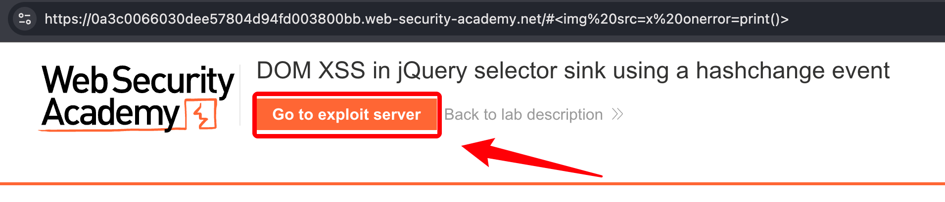 提示: 首页存在基于 DOM 的 XSS 漏洞。页面使用 jQuery 的 $() 选择器处理 location.hash 中的数据,并在 hashchange 事件触发时根据该值定位文章标题。可通过构造恶意片段标识并诱导受害者访问,使页面在处理该值时执行 print(),完成实验。