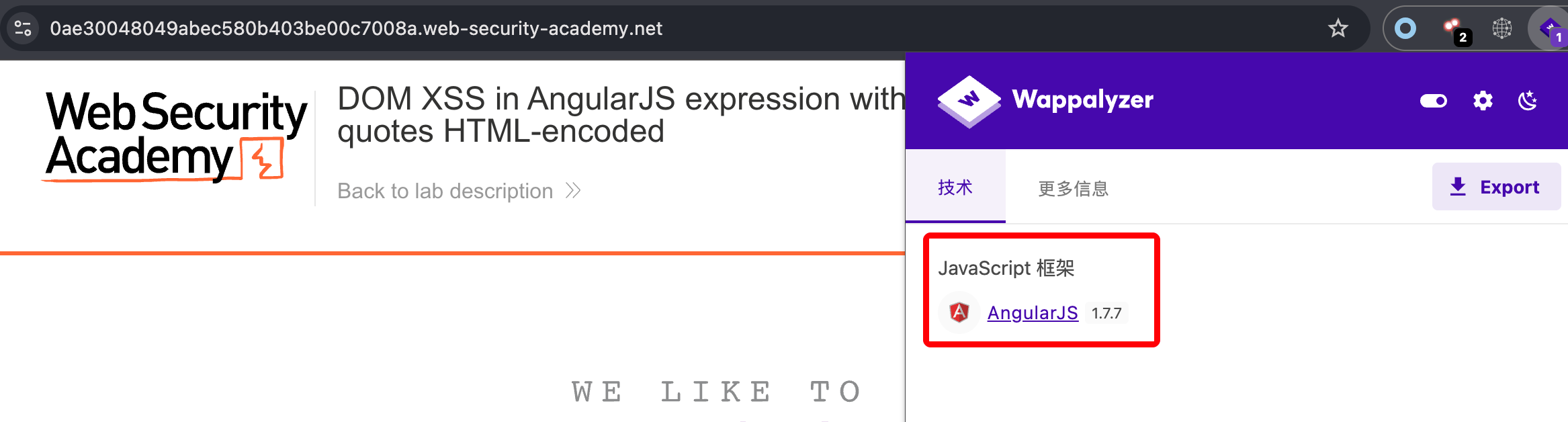 提示: 搜索功能存在基于 DOM 的 XSS 漏洞。页面在 AngularJS 表达式上下文中处理用户输入,虽然尖括号和双引号被进行了 HTML 编码,但仍可通过构造双花括号表达式执行代码并调用 alert(),完成实验。