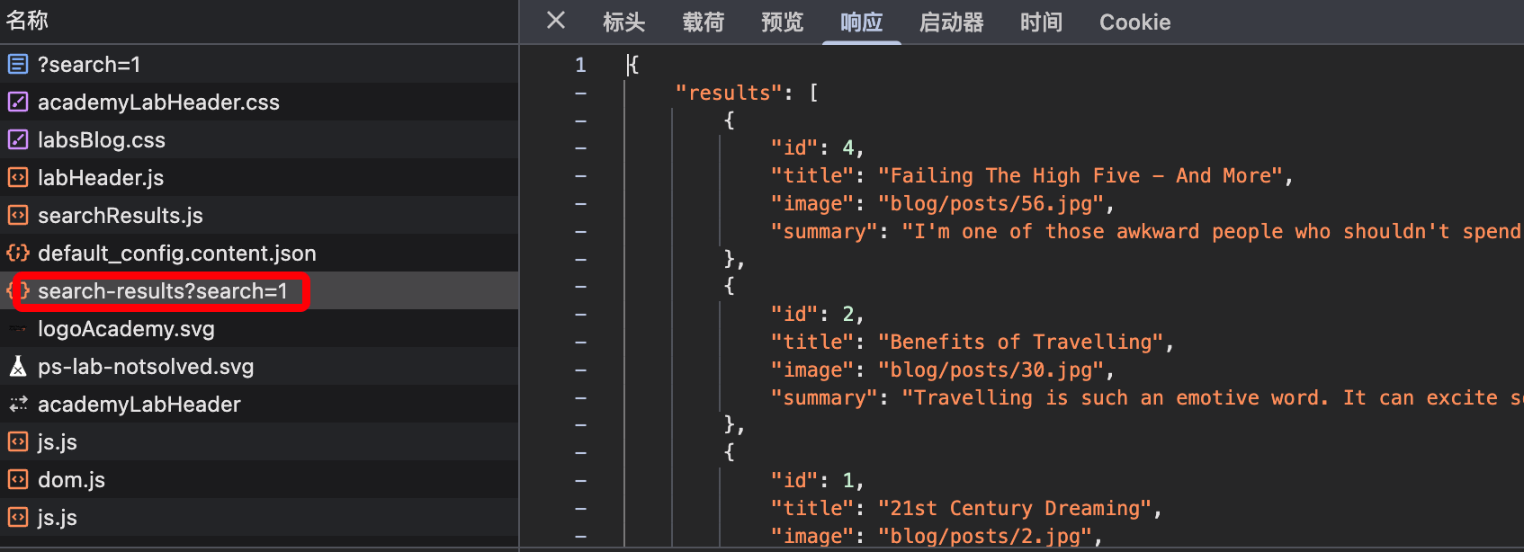 查看页面源码,发现加载过程会引用 searchResults.js 脚本,之后调用 search('search-results') 函数,根据函数名称判断该脚本是用于返回搜索结果,通过源码可找到具体代码。