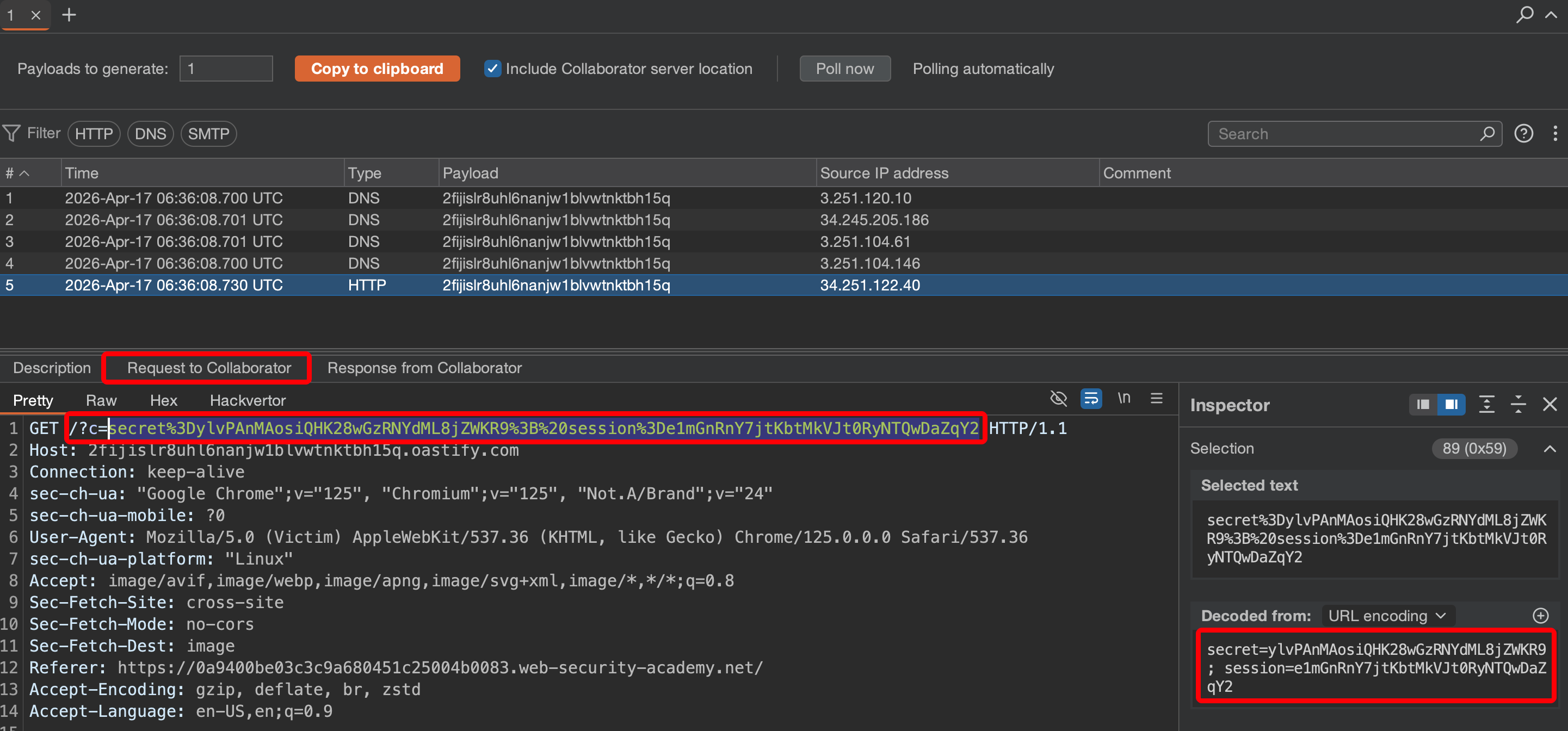 提示: 博客评论功能存在存储型 XSS 漏洞。攻击者可在评论中注入恶意脚本,当受害者查看评论时,脚本会自动执行并将其会话 Cookie 发送到攻击者可控位置。获取受害者 Cookie 后,将其写入浏览器请求中即可冒充受害者,完成实验。