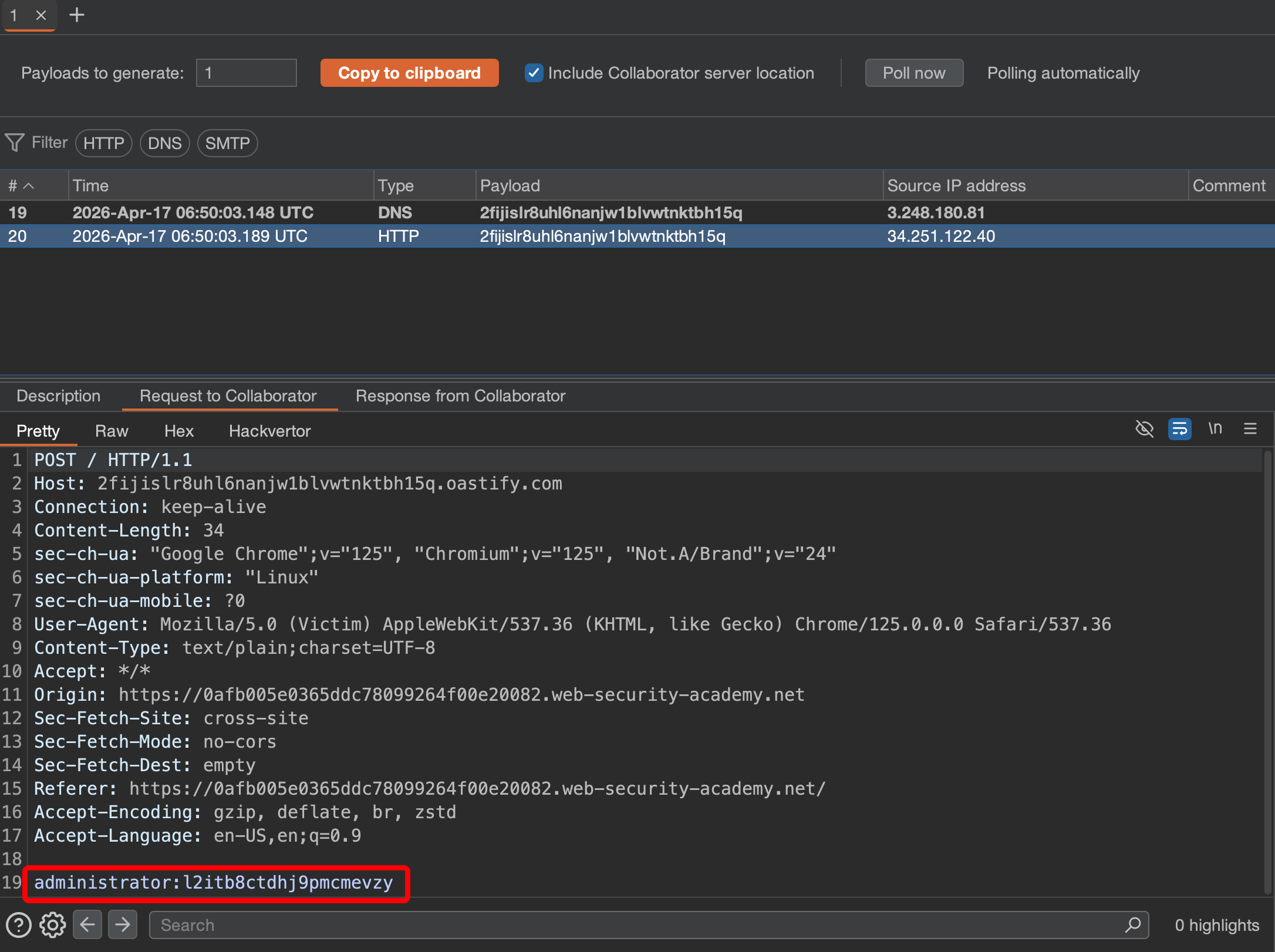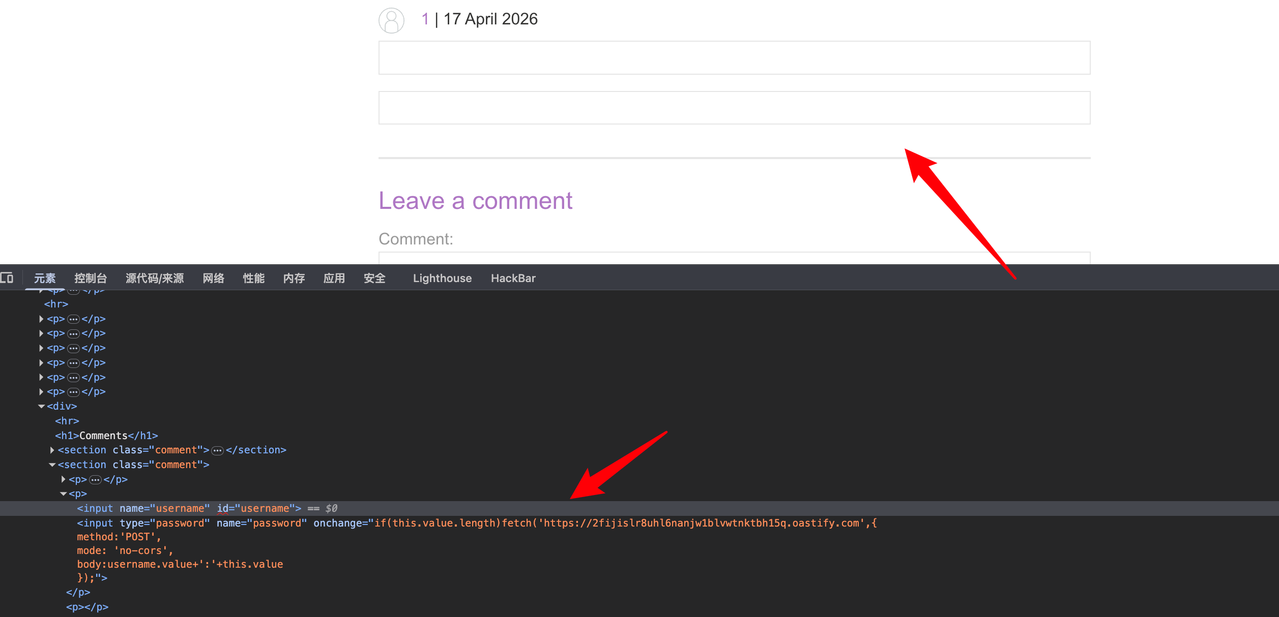 提示: 博客评论功能存在存储型 XSS 漏洞。攻击者可在评论中注入恶意脚本,当受害者查看评论时,脚本会自动执行并窃取其输入的用户名和密码。获取凭据后,使用对应账号密码登录受害者账户即可完成实验。