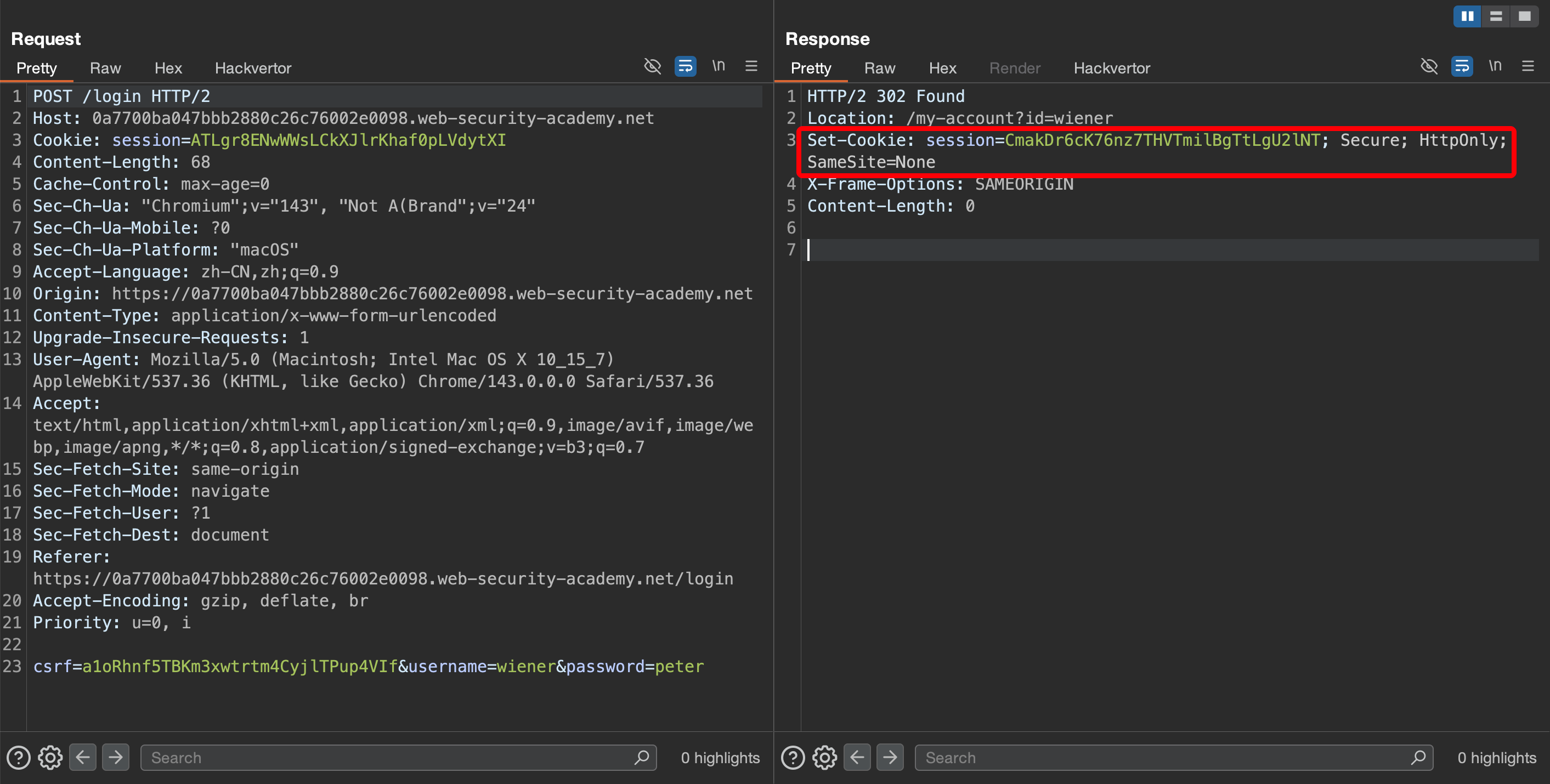 检查登录数据包,发现 Cookie 设置了 HttpOnly,说明无法通过 XSS 漏洞获取用户 Cookie 了。