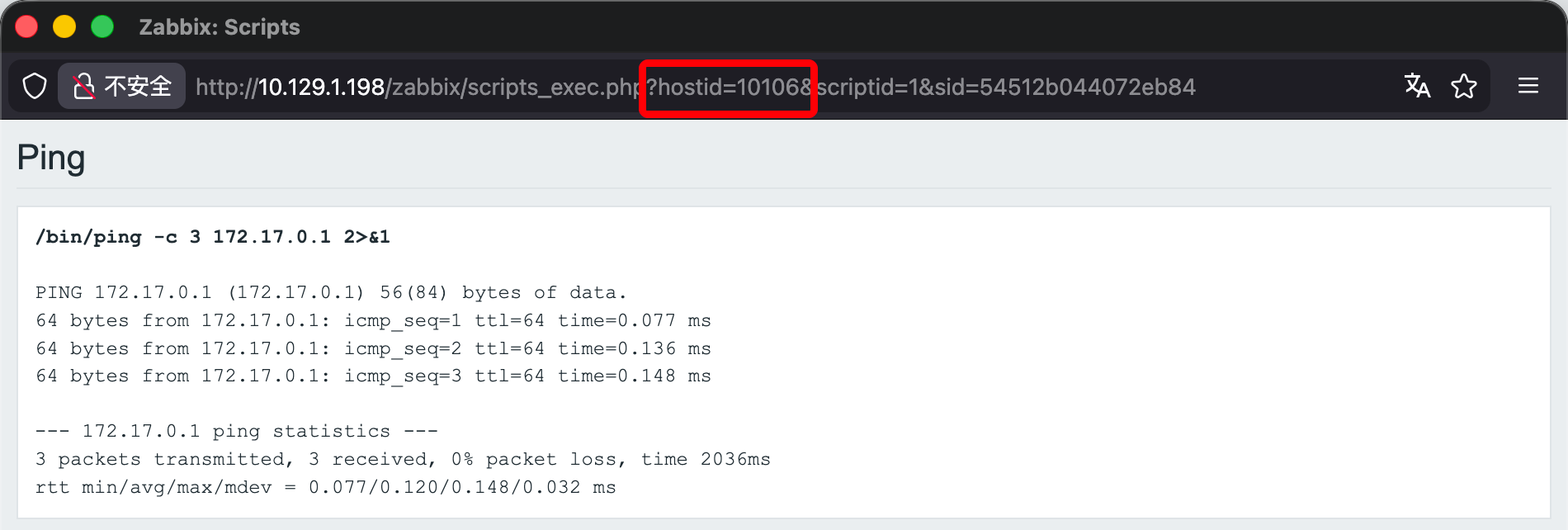 修改脚本中 URL、用户名、密码和 hostid,其中 hostid 可通过 guest 用户后台获取。