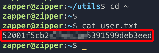 - zapper 用户家目录得到旗帜:user.txt。
