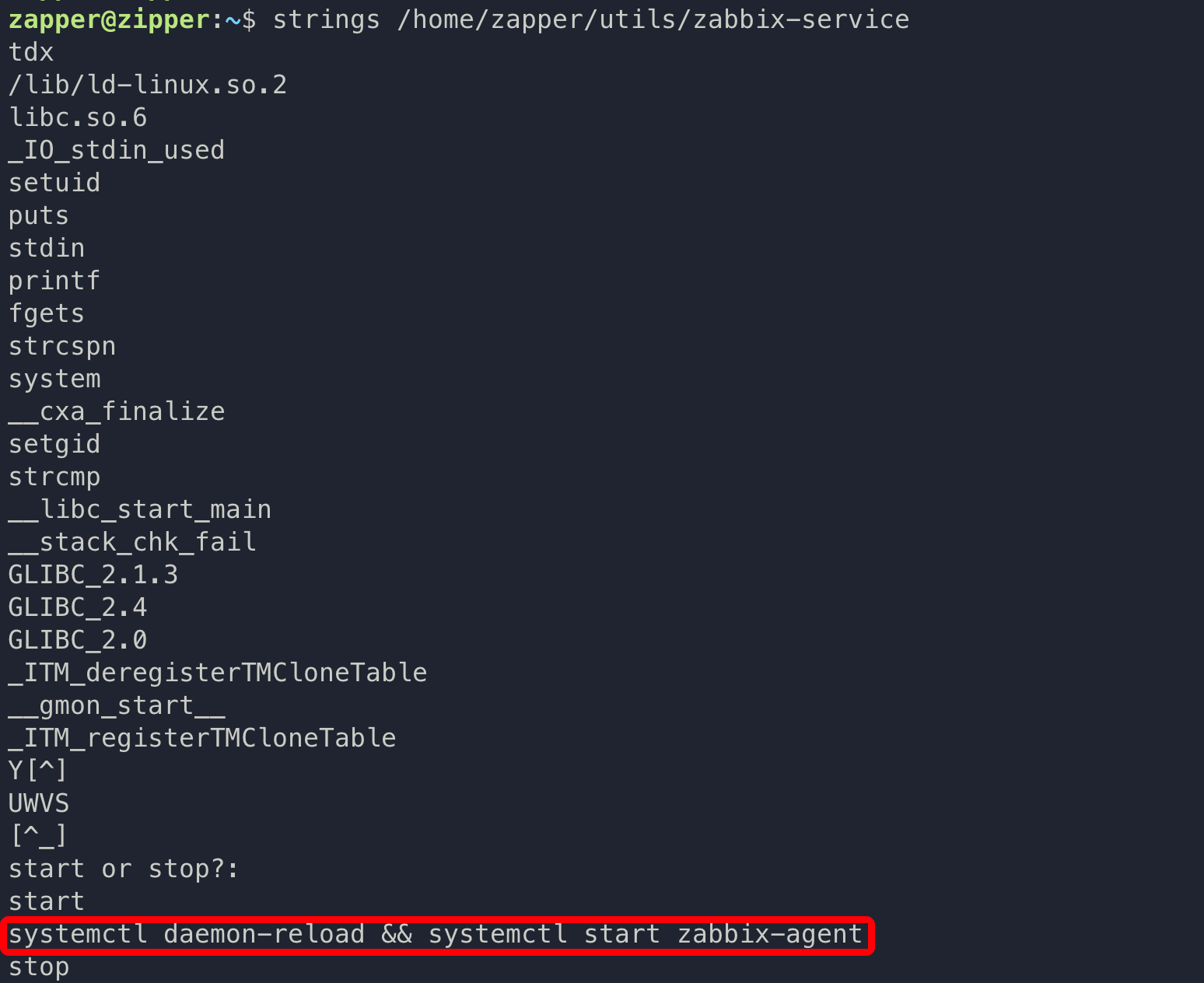 | strings /home/zapper/utils/zabbix-service