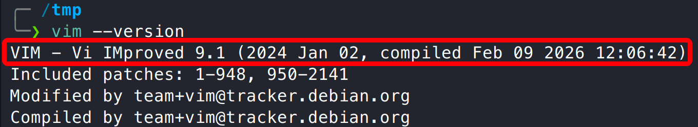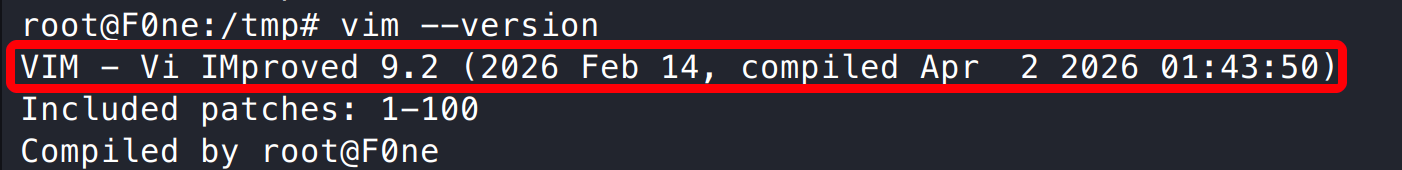 在本地 Kali 环境中测试发现,Vim 9.1 版本未成功复现该漏洞,推测该漏洞主要影响 9.2 至 9.2.0272 之间的版本。